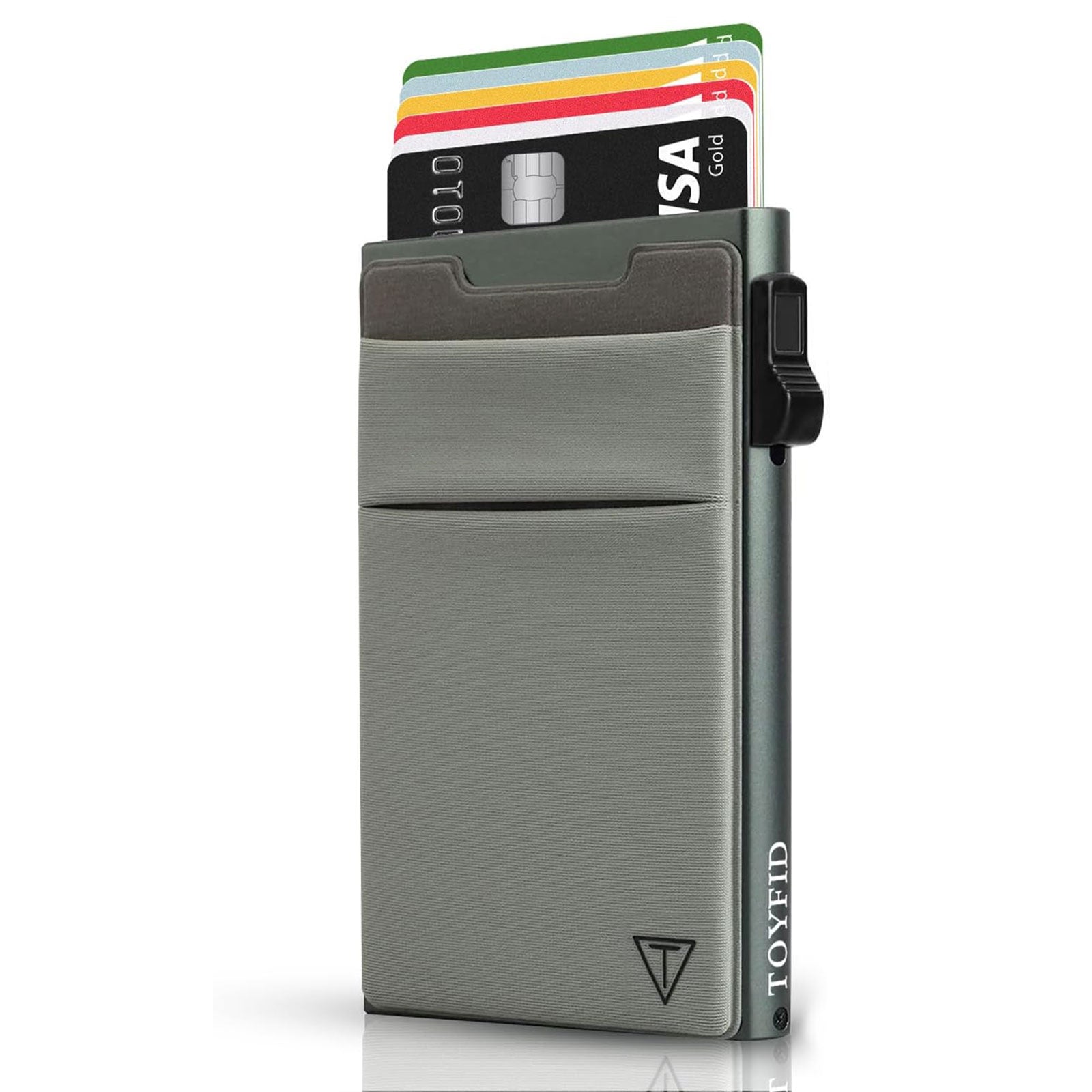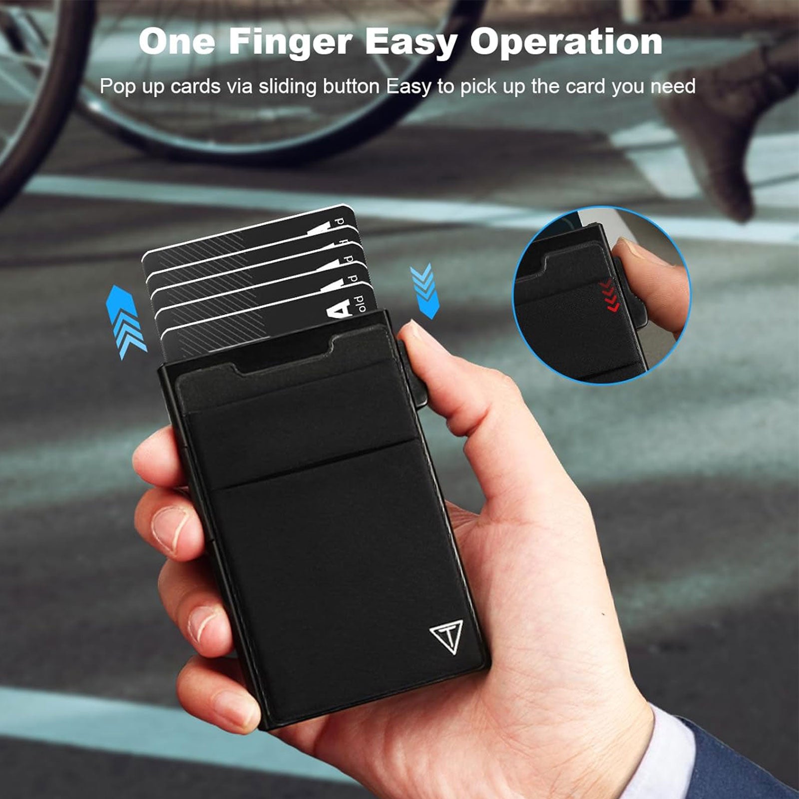 Slim RFID Blocking Wallets,Pop Up Minimalist Card Holder for Men & Women Metal Thin Front Pocket Wallet Credit Card Holder with Elastic Coin Pocket